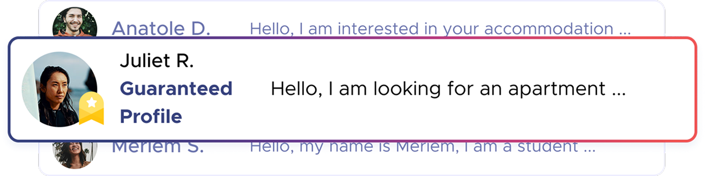 Priority visibility: Your Guaranteed Profile badge puts your message at the top of the landlord's inbox.